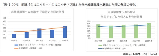 ~2023年度に未経験職種への転職で年収アップした20代は、約6割。前職がクリエイティブ系職種の転職では、過去5年で平均決定年収額が47万円アップ~