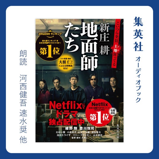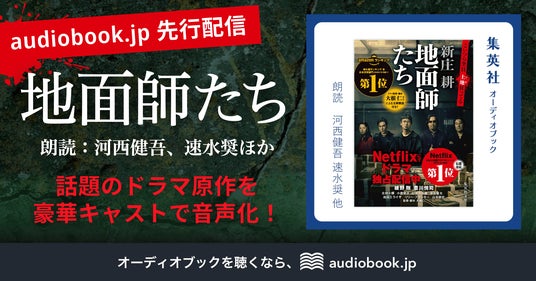 オーディオブック書籍ラインナップ数No.1(※1)の「audiobook.jp」を運営する株式会社オトバンク(本社:東京都文京区、代表取締役社長:久保田裕也、以下「オトバンク」)は、大ヒット中のNetflixドラマの原作である『地面師たち』(新庄耕著、集英社文庫刊)のオーディオブックを、どこよりも早い12月6日(金)よりaudiobook.jpで配信開始いたします。オーディオブック版は、辻本拓海役の河西健吾さん、ハリソン山中役の速水奨さんをはじめ、10人の豪華声優陣の朗読でお届けします。