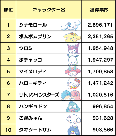 ※投票サイト上で「Sanrio+」IDでログインすると全順位(1~90位)を見ることができます。