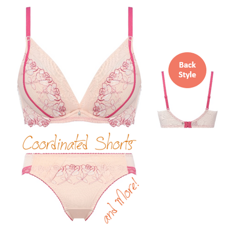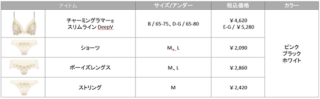 <Handsome Rose>は、チュールのタックとモダンなローズ柄のレースの組み合わせが、スタイリッシュでマニッシュな印象のシリーズ。薄着の季節の到来に向けて、ブラジャーには「チャーミングラマー(R) スリムライン DeepV」が登場します!