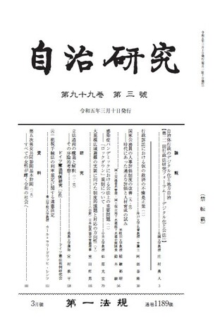 法律関連出版物、各種データベースを提供する第一法規株式会社(所在地:東京都港区、代表取締役社長:田中 英弥)は、『自治研究3月号』を2月28日に発刊しました。