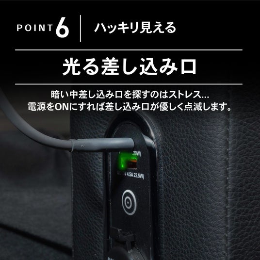 前方にはタイプA、タイプC差し込み口を各1つずつ配備。