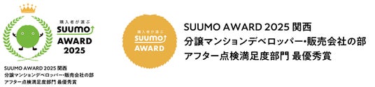 この度は、『SUUMO AWARD 2025』において「アフター点検満足度部門」で最優秀賞という 大変栄誉ある賞をいただき、誠にありがとうございました。