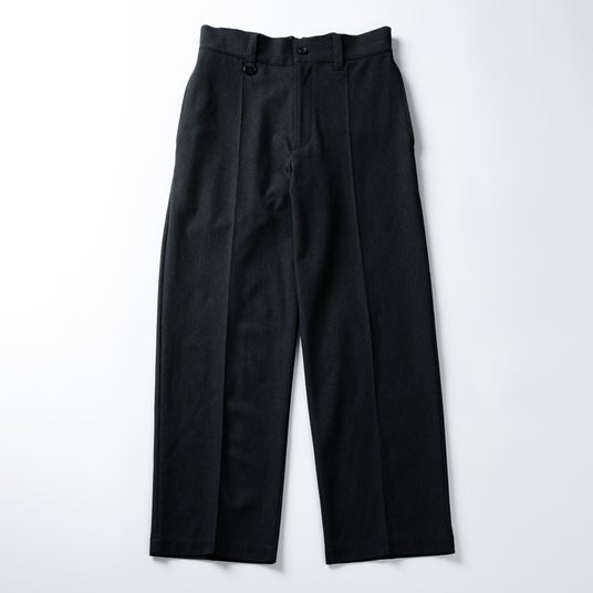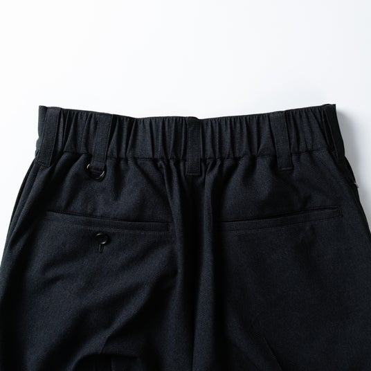 特徴:見た目を損なわない細かな通気孔があいた、高温多湿の夏に適した自社素材「ultimex COOL」を使用。シャツや下着が透けないようにアップグレード。太ももから裾にかけてゆったりとした体型カバーが叶うシルエット。背面ゴムによりベルト無しでも着用可能。ウエスト部分には鍵などがかけられるDカンを配置。センタープレスを入れることで、洗練された雰囲気を演出しました。