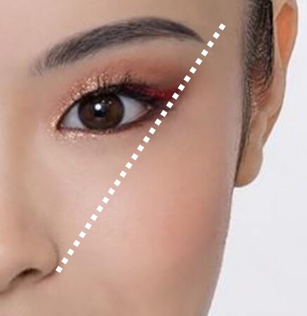 横顔の立体感を引き立てるために、こめかみから頬骨に沿って斜め下に向かって塗布し、表情を引き締めます。
