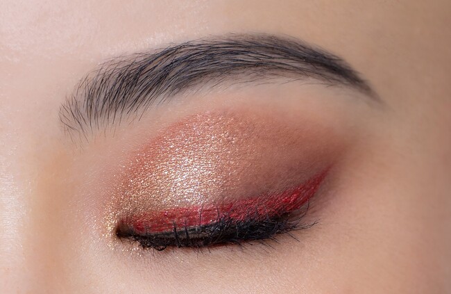 アイライン:目のフレームを強調する「赤」のフェアリーキャットライン
