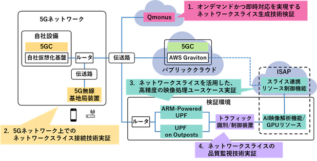 ・Qmonusへのオンデマンドスライス生成機能の実装・AWS OutpostsサーバーおよびAWS環境、Flexible InterConnect提供