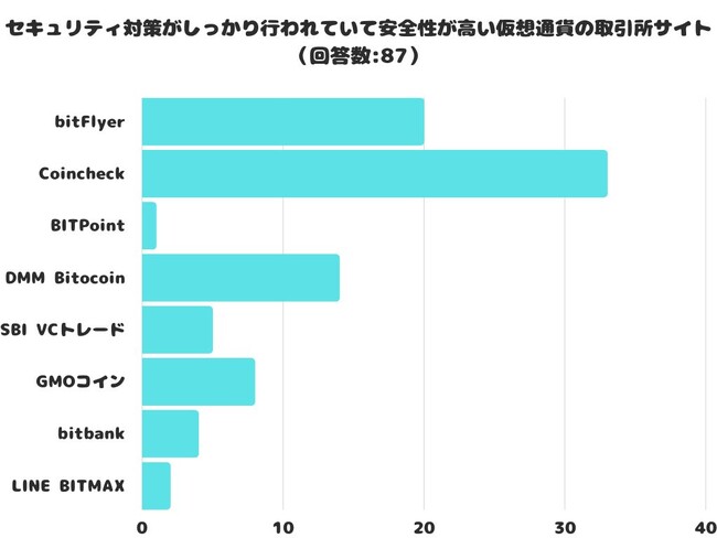 セキュリティ対策がしっかり行われていて安全性が高い仮想通貨の取引所をアンケートにて調査したところ、1位は「Coincheck」でした。