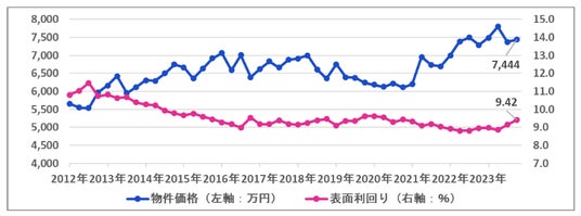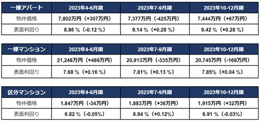 ※表面利回り・物件価格は期間中の平均 ※()内は前期比