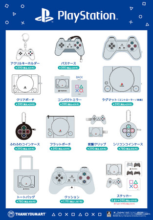 390円(税込429円)を中心としたかわいいアイテムが集まるショップ「サンキューマート」を運営するエルソニック株式会社は、人気ゲーム機『PlayStation』オフィシャルライセンス限定アイテムを、全国のサンキューマート店舗と公式オンラインショップで3月中旬より入荷順次販売開始いたします。