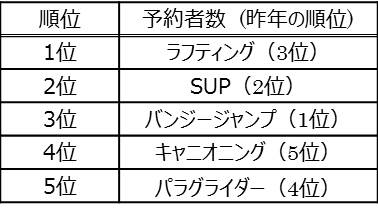 株式会社アクティビティジャパン(本社:東京都新宿区 代表取締役社長:小川雄司 以下、アクティビティジャパン)は、夏休み(2017年7月15日~9月30日催行)の予約状況から、下記のとおりまとめました。