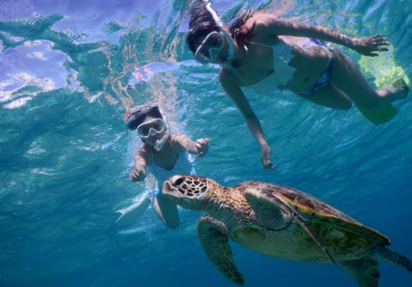 中でも宮古島は、平均滞在日数が3日間、4日間と比較的長期間であるため、流行のスタンドアップパドルボード(以下、SUP)や人気のシーカヤックといったアクティビティに加え、離島ならではの「ウミガメ」「秘境」といったテーマ性のあるシュノーケリングがセットになったプランを中心にご好評を頂いております。誰でも手軽に楽しめるシュノーケリングは、幅広い年齢層の方にご参加頂け、沖縄の透明度の高い海を自ら「体感」することができるため、夏のファミリー旅行でも例年人気となっております。