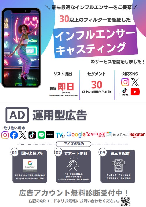 ・動画広告:YouTube/TVer/TikTok/Be.Real/Abema