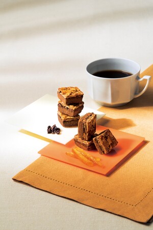 そして「ショコラオランジュ」は、オレンジピールを練りこんだ爽やかな香りと酸味が、ダークチョコレートの深い味わいを軽やかに引き立てます。チョコレートのコクと深み、柑橘とのマリアージュをお楽しみください。