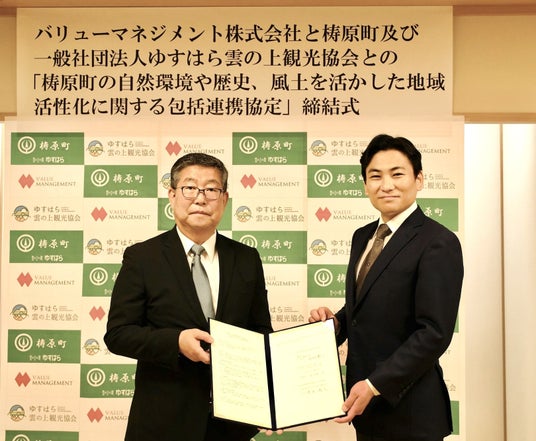 バリューマネジメント株式会社(本社:東京都千代田区、代表取締役:他力野淳、以下弊社)は、高知県梼原町及び一般社団法人ゆすはら雲の上観光協会と「梼原町の自然環境や歴史、風土を活かした地域活性化に関する包括連携協定」を、令和6年7月13日に締結したことをお知らせします。