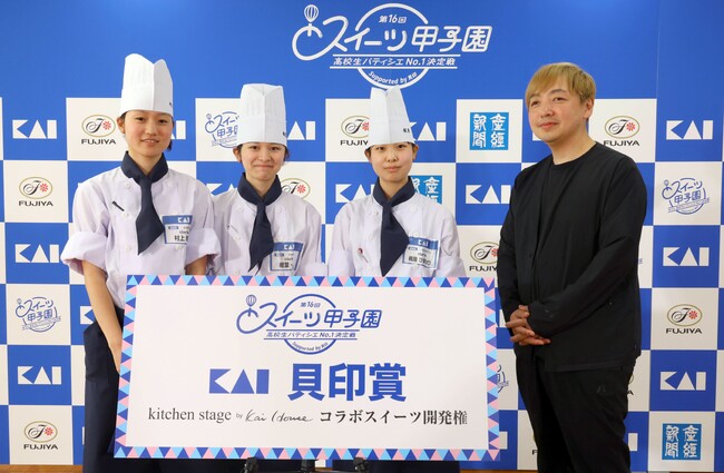 道具を適正かつ大切に使用していたチームへ贈られる貝印賞には飯塚高等学校が選ばれ、貝印賞受賞チームには、貝印が新宿伊勢丹本館地下1階で運営する「Kitchen Stage」にて、生徒が考案したレシピを提供することができる、オリジナルレシピ共同開発権が贈られます。