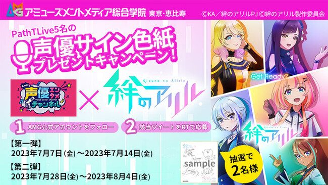 エンタメ業界の即戦力を育成する学校法人吉田学園(アミューズメントメディア総合学院/東京都渋谷区、理事長:吉田 尚剛、以下 AMG)は、アニメ『絆のアリル』 キャスト5名のサイン色紙が抽選で当たるリツイートキャンペーンを開催することをお知らせします。