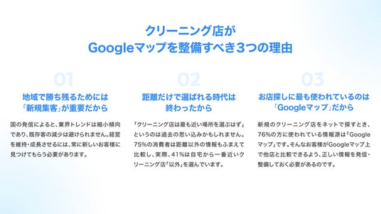 Google ビジネスプロフィール(TM)︎・HP・各SNSの一括管理サービス「カンリー店舗集客」の開発・提供を行う株式会社カンリー(所在地:東京都品川区、代表取締役:辰巳 衛,秋山 祐太朗)は、クリーニング業界向けに「地域で勝ち残るためにクリーニング店がGoogle マップを整備すべき理由」を無料公開しましたので、ご案内いたします。