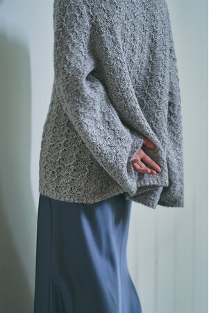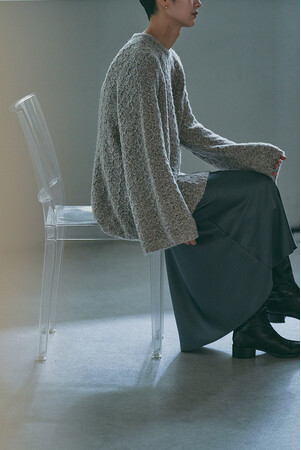 カシミヤとシルクのブークレー糸を使用し光沢感としなやかさを表現した美しい素材に。