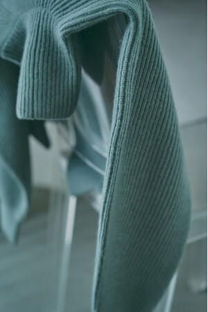 紡毛カシミヤを両畦にした立体感が特徴のニットシリーズ。