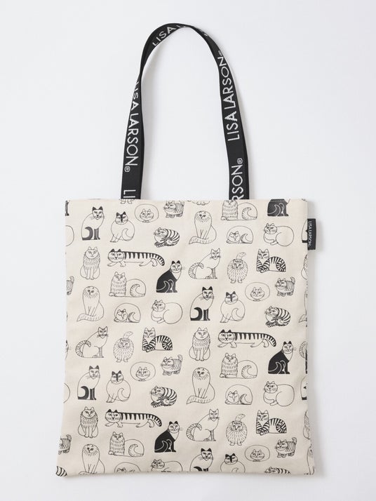 スペシャルアイテムは、リサが描いたさまざまな猫のスケッチを総柄でプリントしたトートバッグ。リサ・ラーソンの作品の中でも人気のモチーフです。内ポケットもついており、毎日のお出かけに重宝するアイテムです。