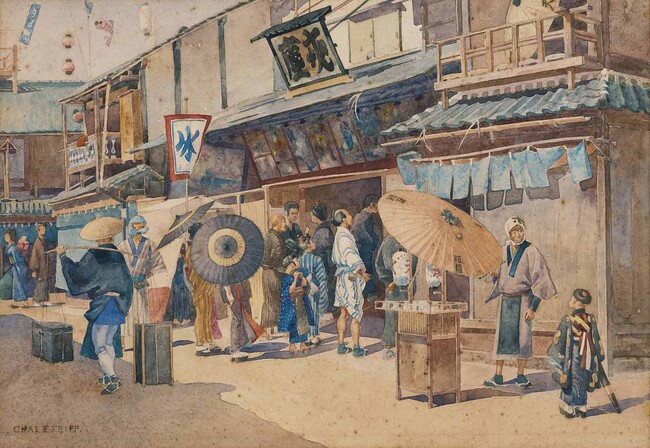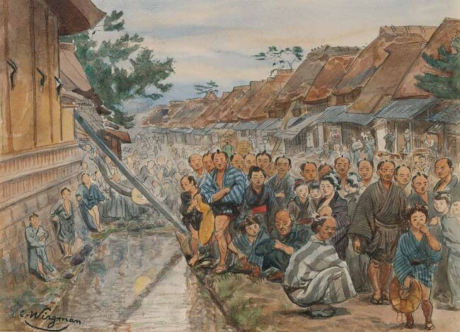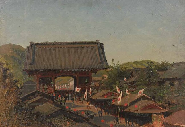 日本の近代の始まりである「明治」。日本は西洋諸国からさまざまな文物や人々を迎え入れ、一大変革を経験しました。それは美術の世界においても例外ではなく、日本を訪れた外国人画家たちは、西洋とは異なる日本の文化や自然に興味を抱き、その様子を描きました。また日本人の画家たちは西洋人から学んだ新しい技法で、自分たちの国の風景や暮らしを描いたのです。これらの作品の多くは外国人に求められ海外に渡り、長年の間眠っていました。本展の出品作品はすべて、コレクターの高野光正氏が半生をかけて海外で収集し、日本へ里帰りを果たしたものです。この類を見ないコレクションには、今では失われてしまった明治の日本の貴重な姿が残されています。本展を通して西洋人たちが驚きとともに発見した日本、また日本人が再発見した美しい日本への旅に、