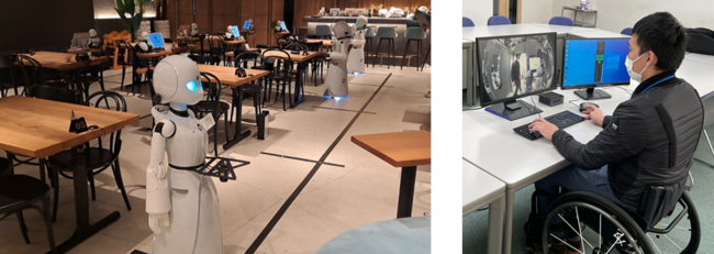 図2:分身ロボットカフェでの実証実験の様子(左)、