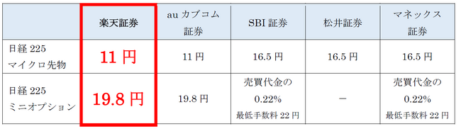 楽天証券株式会社(本社:東京都港区、代表取締役社長:楠 雄治、以下「楽天証券」)は、2023年7月31日(月)16時30分(夜間立会の約定分)より、「日経225マイクロ先物」と「日経225ミニオプション」の取引手数料を業界最低水準※に改定することをお知らせします。
