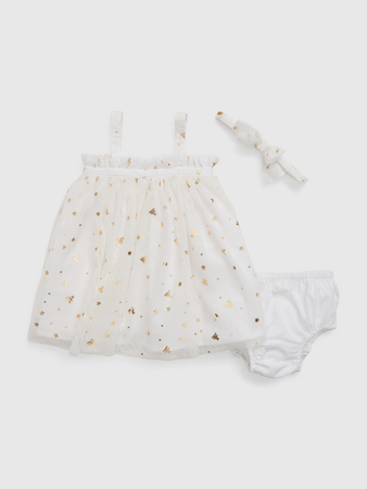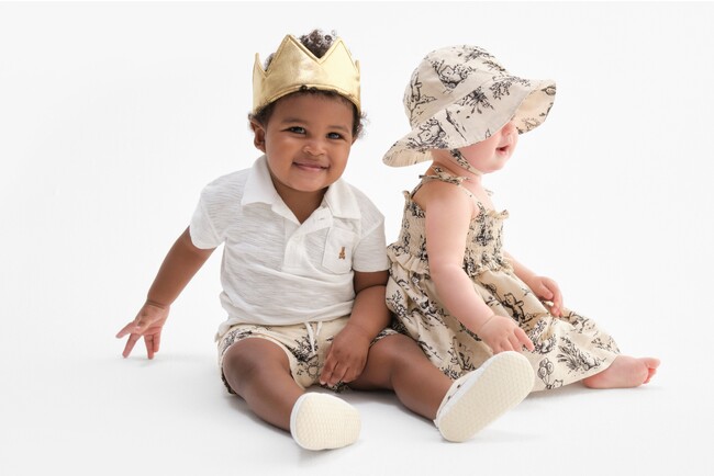 アニバーサリーのお祝いには、ベビーを引き立たせるニュートラルカラーを基調に、”BIRTHDAY BEBE”のレタードTシャツや、バースデーケーキのデザインがキュートなラッフルキャミ×ショーツのベビーセットなどが揃います。お誕生日会や記念日にもおすすめの、シャンパンゴールドがアクセントになったキャミソール×ショーツ、ブラナンベアがプリントされたヘアバンド付きの華やかなドレスなど、セットアップも充実します。
