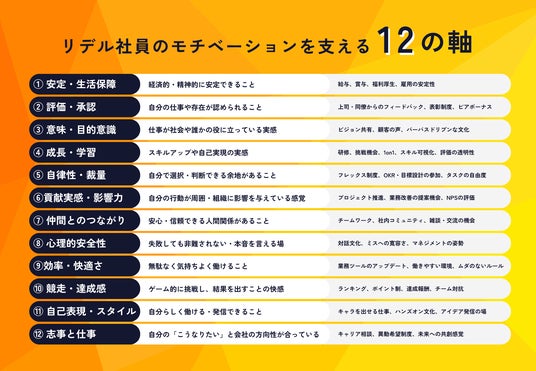 リデルの社員はZ世代が多く、「お金」や「役職」だけでなく、自分の“らしさ”が出せることや、心地よく働ける環境、チームと切磋琢磨し自分の存在価値が感じられるといった、内面的なモチベーション要素をより重視する傾向があります。