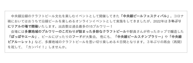 【主 催】:中央線ビールフェスティバル2022実行委員会
