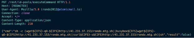 特徴的なユーザーエージェント文字列や、リモートホストからRondoDoxマルウェアをダウンロードするためのコマンドが観測されたことから、この活動はRondoDoxボットネットによるものと見られます。