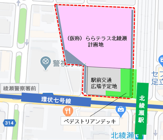 東京メトロ北綾瀬駅前にてライフスタイル型商業施設「(仮称)三井ショッピングパーク ららテラス北綾瀬」が着工。2025年夏開業予定。