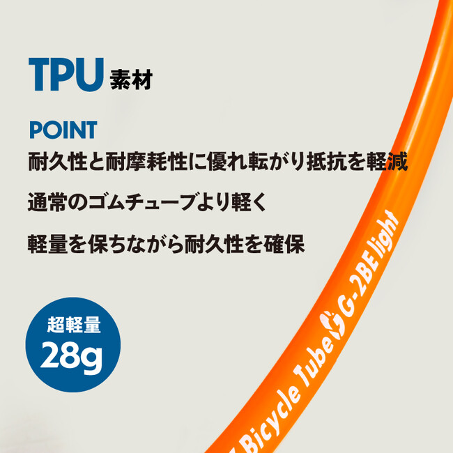 強度が高く軽量なのが特徴のTPUインナーチューブです。