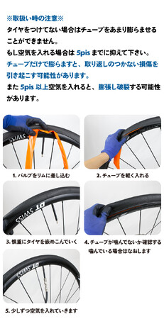 ペラペラのTPUチューブを嵌めやすくするため初めに空気を入れる場合は5pisまでに抑えて下さい。