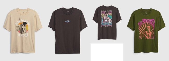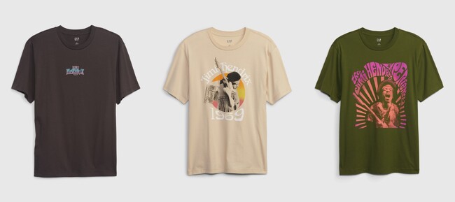 1960年代に一世を風靡したジミ・ヘンドリックスと、1969年に創業し音楽をルーツにもつGAPとのコラボTシャツが全3型ラインナップ