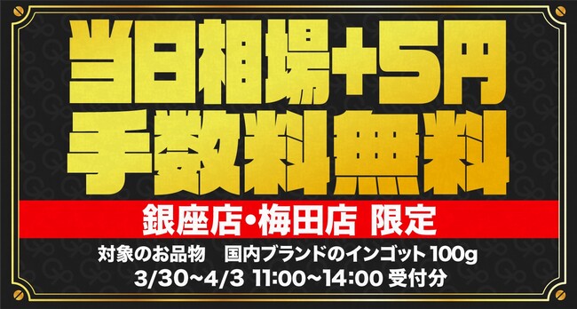 ~銀座本店梅田本店限定インゴット買取キャンペーン開催~