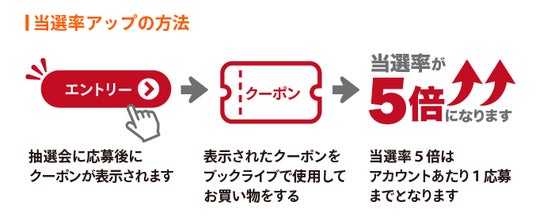 応募完了後に獲得できる200円OFFクーポンを利用して、ブックライブで電子書籍を購入すると、当選率が5倍にUPいたします。