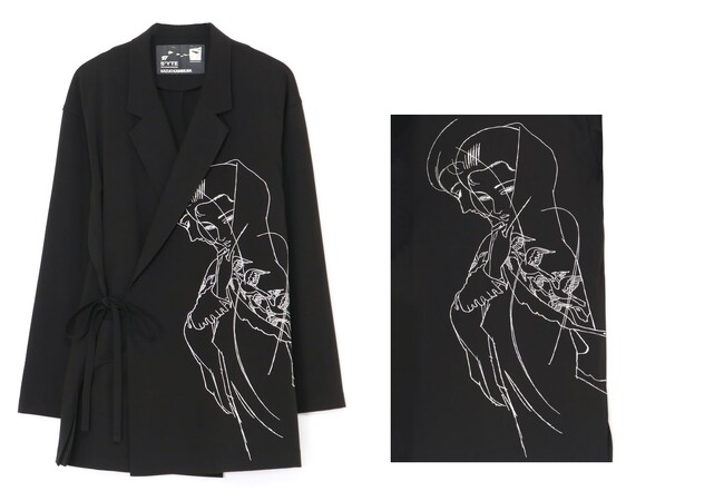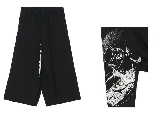本コラボレートでは、上村一夫氏が手掛けた名作をフィーチャーし、彼独自の世界観をアイテムに表現。どこか儚いながらも、情熱的で柳のように強い女性の美を描写した作品に、ヨウジヤマモトのエッセンスと70年代カルチャーのインスピレーションを落とし込む事で、唯一無二のコレクションとして誕生。