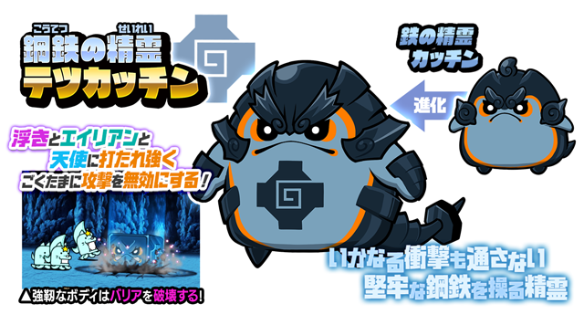 宇宙にきらめく大精霊たちが集結した「大精霊エレメンタルピクシーズ」に、新キャラクター「鋼鉄の精霊テツカッチン」が参戦します。