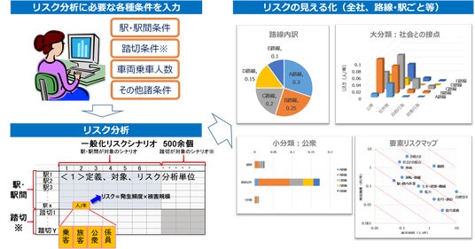 鉄道事業者においても、列車の脱線、踏切での自動車や通行者などとの衝突、自然災害などのリスクに対し、さまざまな安全対策が求められています。しかし、その内容・原因は多岐にわたり、さらに路線・駅により発生傾向が異なることから、安全対策の優先度を適切に設定することが難しいのが現状です。