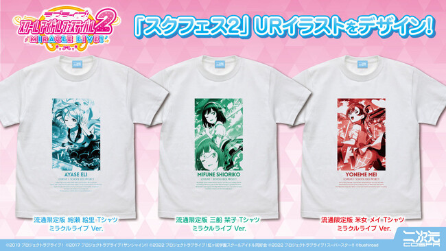 それぞれ『スクフェス2』のURイラストを使用したTシャツで、推しのメンバーたちを応援、『スクフェス2』をもっと楽しめるアイテムです。