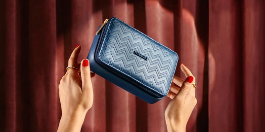 新しいデルタ・ワンのアメニティキットは、ポーチの外側にミッソーニのシグネチャーである、質感のあるジグザグ模様があしらわれています。ミッソーニとデルタ航空のチームは、3万フィート上空の窓からの眺めと、デルタ航空の100年近い運航の歴史へのオマージュを表す独自のパターンと色を作りあげました。