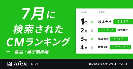~ノバセル発表、2025年7月 視聴者が検索したテレビCMランキング【食品・菓子業界編】~