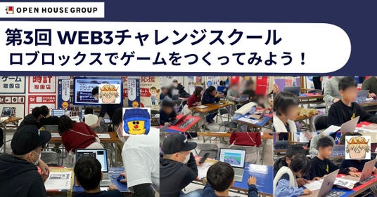株式会社オープンハウスグループ(本社 東京都千代田区、代表取締役社長 荒井正昭)は、「Web3チャレンジスクール」の第3回として、2023年11月25日(土)に「ロブロックスでゲームをつくってみよう!」と題した教室をコジマ×ビックカメラ 梶ヶ谷店で開催いたしました。今回は、本スクールの趣旨にご賛同いただいた株式会社コジマ様の全面協力のもと、ロブロックスのプロのクリエイターチームである「おっさんずロブ」様をゲスト講師としてお招きし、コジマ×ビックカメラ 梶ヶ谷店(神奈川県)で、初心者向け教室として開催いたしました。当日は、幅広い年齢層の方々にご参加いただき、先生に教わりながら1日でゲームを完成させ、世界に公開しました。また、多くのご要望にお応えし、第4回開催も決定しました。詳細内容は2024年1月に発表いたします。