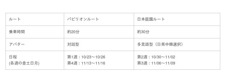 1.実証期間:2020年10月23日(金)から11月16日(月)の金、土、日、月、計16日