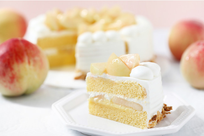 シンプルで王道人気のショートケーキと、柔らかくてみずみずしい桃を存分にお楽しみください。
