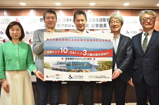 広島県(知事:湯崎英彦)、一般社団法人広島県観光連盟(本部:広島県広島市、会長:佐々木茂喜、以下「広島県観光連盟」)、三井不動産株式会社(本社:東京都中央区、社長:植田俊、以下「三井不動産」)、学校法人先端教育機構 事業構想大学院大学(本部:東京都港区、学長:田中里沙、以下「事業構想大学院大学」)は、4月21日(月)、共同プロジェクトとして「世界トップ10・日本トップ3の観光県を目指す!事業構想プロジェクト研究(以下「本プロジェクト」)」を発足しました。