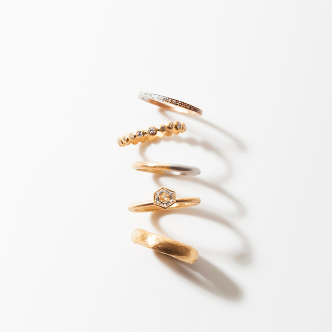自然の中に見つけられるような形や素材感、また古い建物やそのインテリアからインスピレーションを受け、日本人デザイナーらしい繊細なジュエリーを生み出しています。