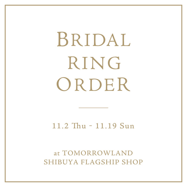 トゥモローランド 渋谷本店では11月2日(木)から11月19日(日)の期間中、〈 BRIDAL RING ORDER会 〉を開催いたします。
